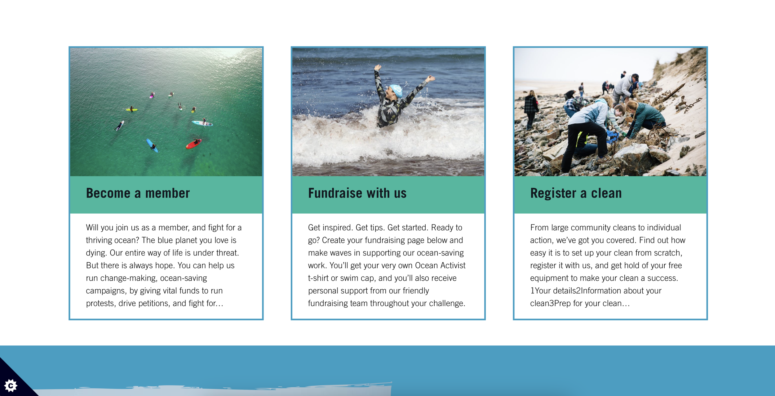 We’ve taken a look at multiple websites by some of the most popular environmental non-profit organizations, including Rainforest Trust and Friends of the Earth, and we’ve seen some patterns in their UX design and compared to that of Surfers Against Sewage’s