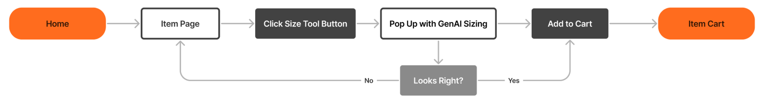 Users start at the homepage, pick an item, and the sizing tool will recommend a size based on customer purchase and return history