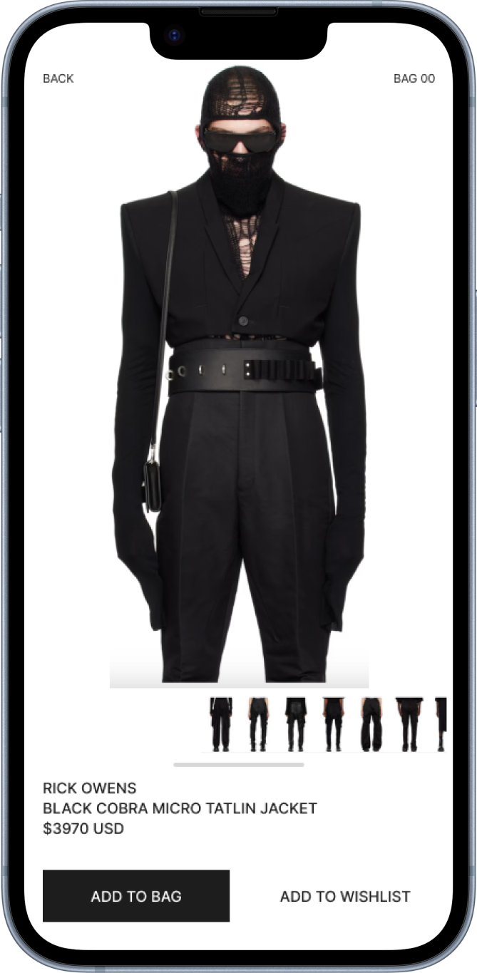after clicking an item, it lands you to this item page, with an “add to bag” and “add to wishlist” button